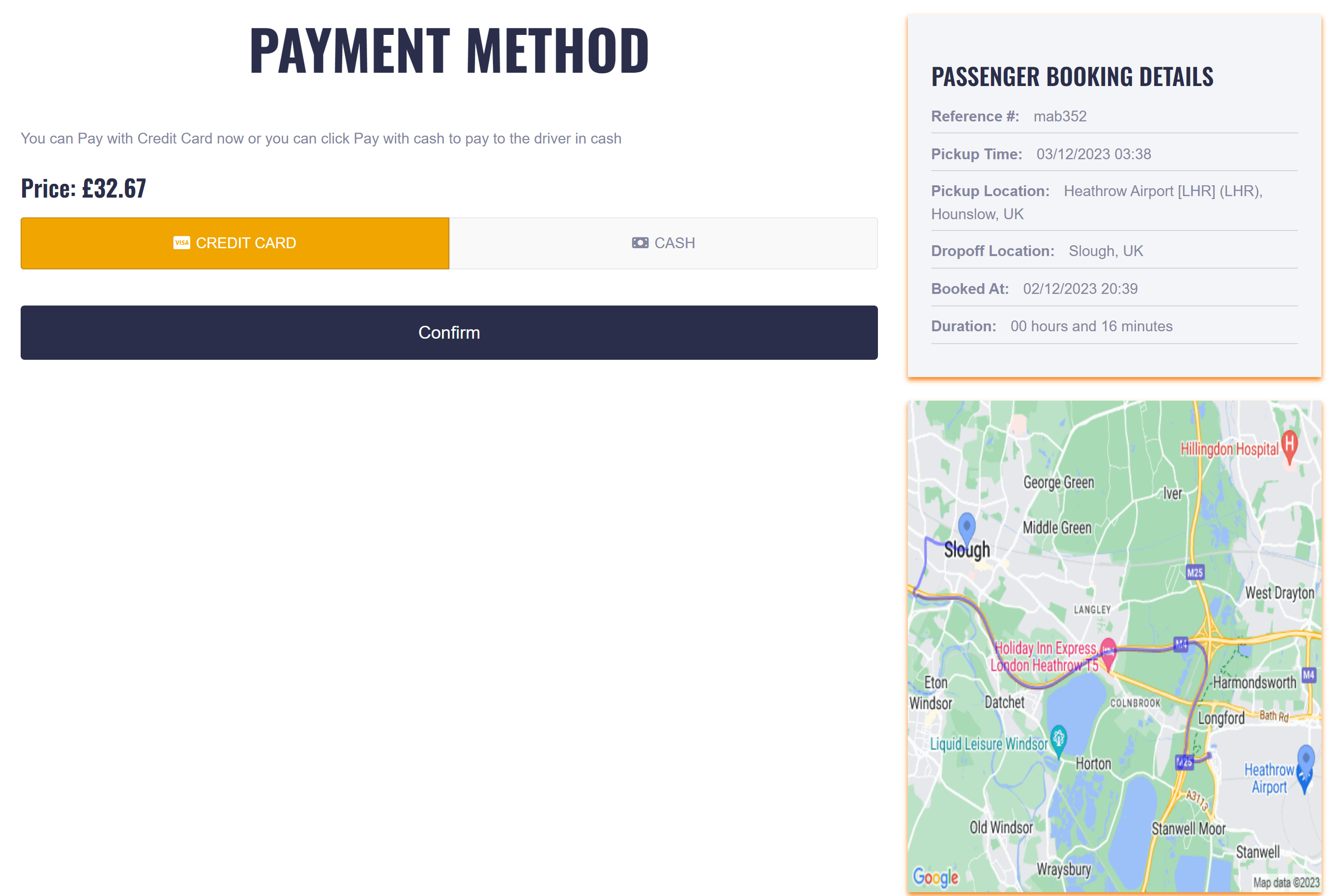 Fleetily allows passengers to book and pay for their desired trips ahead of time, using either cash or card for payment, ensuring a smooth and seamless experience.